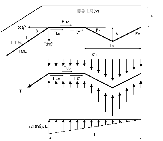 上覆土从对土工膜施加的剪切应力 ( 可以忽略不计 ) |
