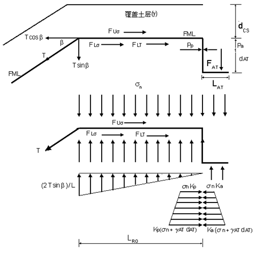 土工膜和锚固固壁间摩擦力 |