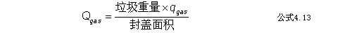 垃圾场的实际气体产生速度取决于垃圾成分、垃圾含水率等。对于有衬垫、没有渗滤液循环的垃圾填埋场来说,可假定气体产生速度qgas等于6.24×10-3m3/kg/year=1.98×10-10 m3/kg/s。封盖层直接下方的气流流量可保守地预计如下。