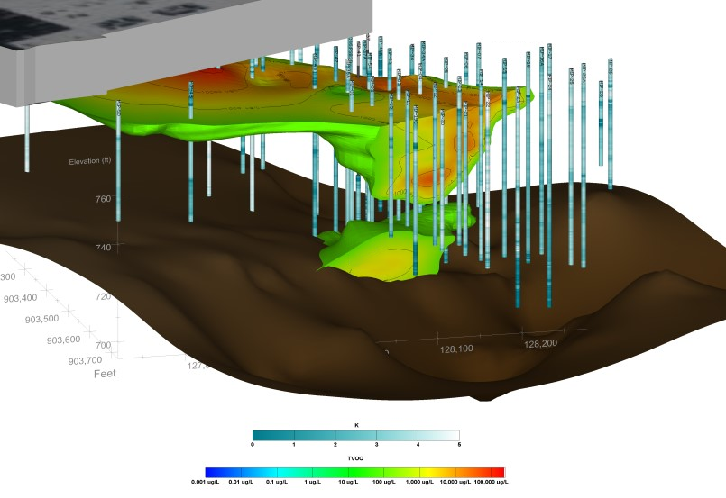 某项目通完高精度长周期监测掌握污染羽动态变化规律 污染扩散范围模拟 以源头削减和监测自然衰减为主的填埋场地下水污染管控方案 工程概况 针对某填埋场场区及周边开展地下水污染详查,采用高密度钻孔取样、地下水位动态监测与水质多指标分析相结合的技术手段,精确刻画地下水污染羽的空间分布范围和迁移规律。 调查方法 高分辨率采样:沿场区及下游方向布设多层次监测井,利用微泵分层取样技术获取不同含水层的地下水样品; 污染羽动态监测:建立长期地下水位和水质监测网,通过高频次采样掌握污染羽季节性和年际变化规律; 环境风险定量评估:基于污染物浓度分布数据,采用标准的健康风险评估模型,对不同暴露途径下的人体健康风险进行定量计算; 管控方案制定:综合污染特征和风险评估结果,提出以源头削减和监测自然衰减为主的地下水污染管控方案,明确监控指标和监控频次要求。