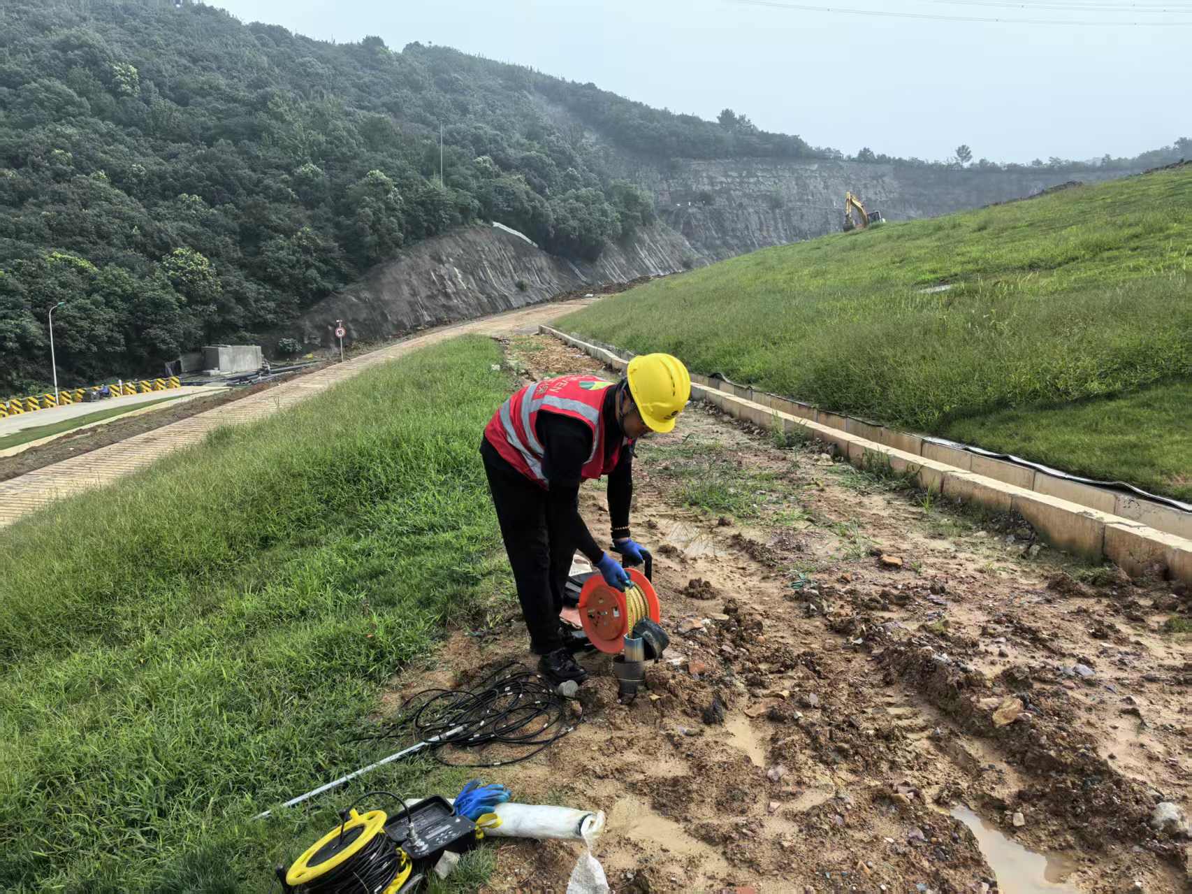 工程概况 库区性质:飞灰填埋库区,柔性库区; 防渗结构:双层 HDPE 膜结构; 在线监测面积:57,154.0 m²。 监测系统布设 电极布设间距:6 m × 6 m; 监测电极数量:共 1,565 个; 供电电极数量:膜下 52 个,膜上 52 个。 检测与验证过程 项目建成后,采用 开孔验证 的方式检测系统有效性; 系统采集到异常数据并提示 渗漏报警; 根据系统提供的渗漏坐标,在现场放样开挖; 成功找到对应的破损孔洞。 成果与意义 验证了 在线监测系统的长期有效性与精确性; 实现了从数据采集、坐标定位到现场开挖验证的完整闭环; 为飞灰填埋库区的运行安全和地下水环境保护提供了可靠保障。